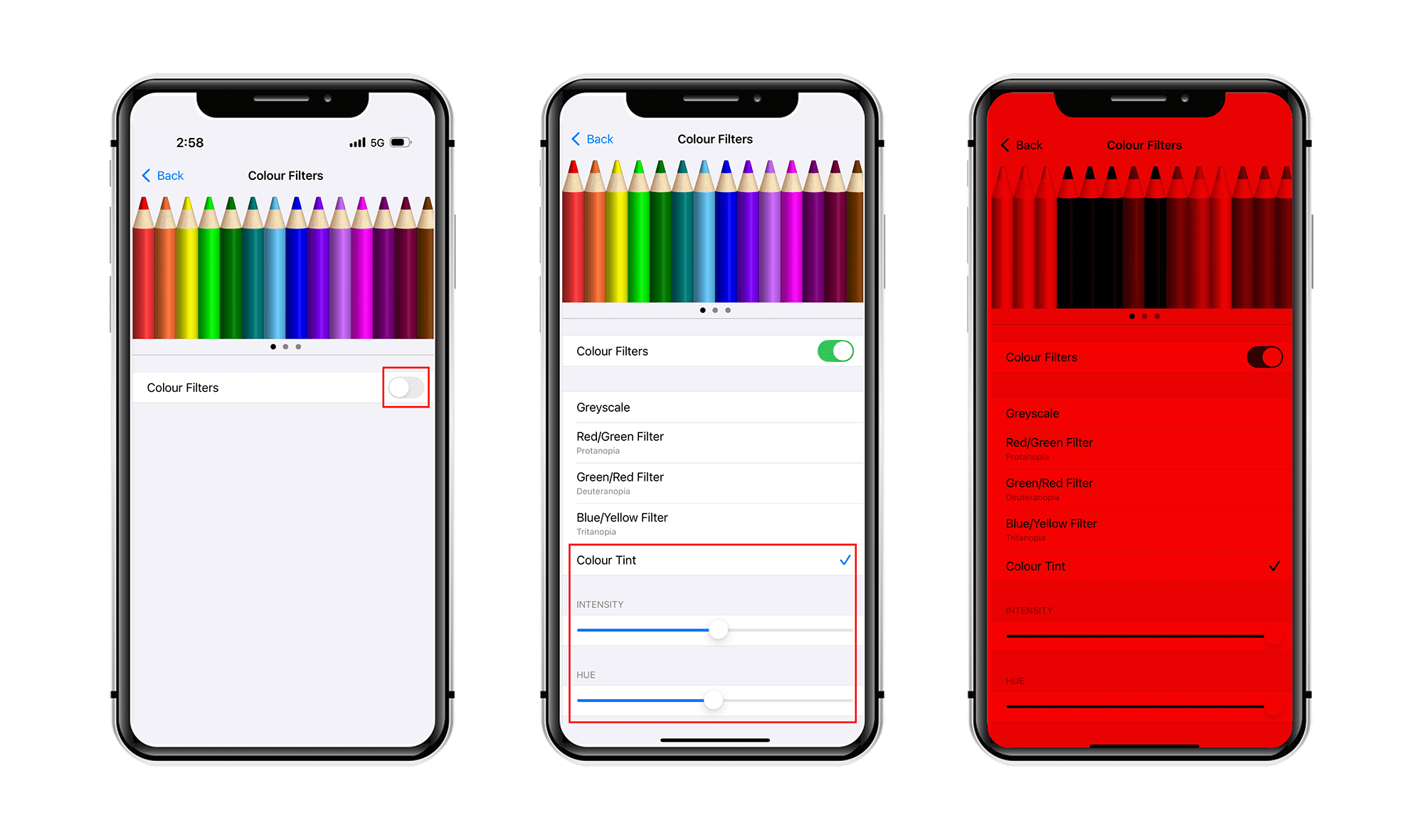 - Use iPhone settings, such as Night Shift and Color Tint.